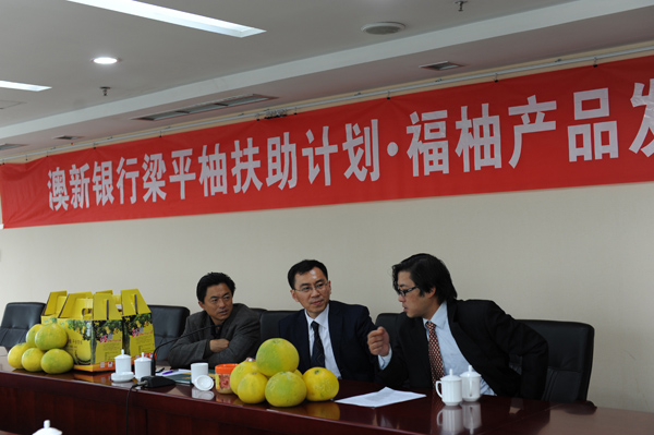 2011年11月4日,梁平福柚产品发布会在重庆市雾都宾馆隆重召开。会上,梁平龙滩柚子专业合作社理事长张文辉介绍了梁平龙滩福柚的来历。他说,龙滩福柚均选自百年老树,且经过洗果包装之后上市,个大味甘,质量上乘。梁平澳新村镇银行行长张港先生介绍了澳新银行集团的梁平柚CSR社会责任活动,表示澳新银行将一如既往地支持梁平柚产业的发展。他最后说,他每天吃一个梁平柚,多吃柚对人体有好处,送“福柚”就是送祝福、送健康,应该成为一种时尚。